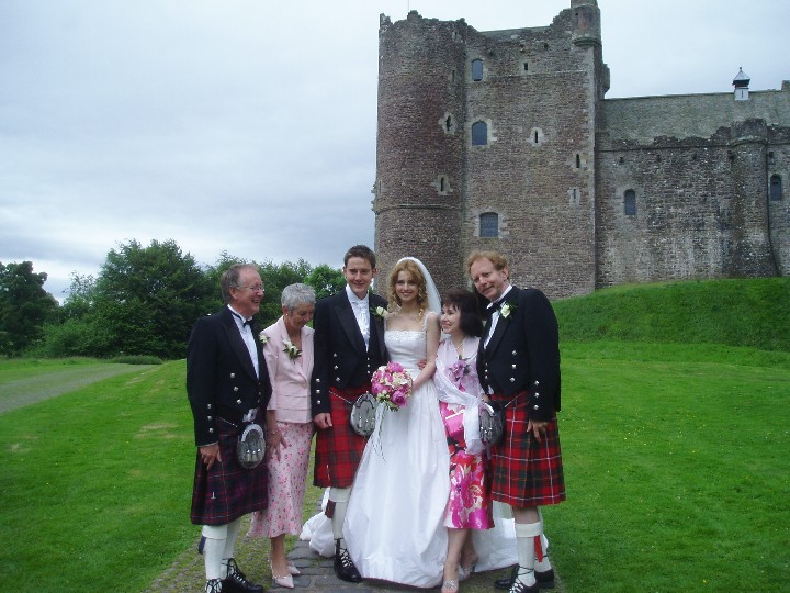 On June 16, 2004, Dave's daughter Pamela was married to a Scotsman, Paul Sharp at Doune Castle in Scotland. Above are his parents, the loving couple, and her parents.