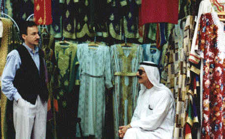 Throughout Bahrain’s history it has been a trading center (Actually, they would claim it has been a trading centre. The British influence here is strong.), where east and west meet. These folks are definitely carrying on the tradition. Although what used to be the silk and pearl trade has of late become the polyester and fake rolex trade. And the electronic toys trade. Et cetera. A large proportion of the stores sells fabrics, and another large group sells gold jewelry.
